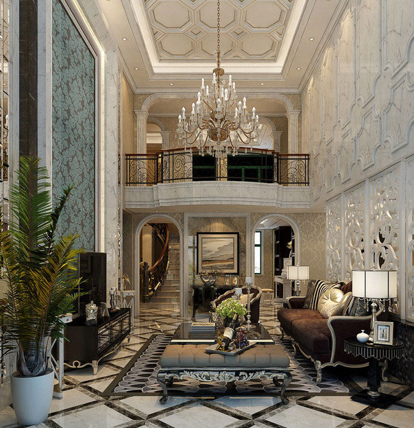 欧式典雅型,追求的是大气、高雅。复式楼空间开阔,在地板的铺设方面可以采用精致的石材。在吊顶上,可以缀以华美璀璨的水晶吊灯,更显大气之风。在家具选择上,以典雅的皮质家具为主,并辅以具有传统雅致古典气息典的地毯、挂画、墙纸等等装饰品。